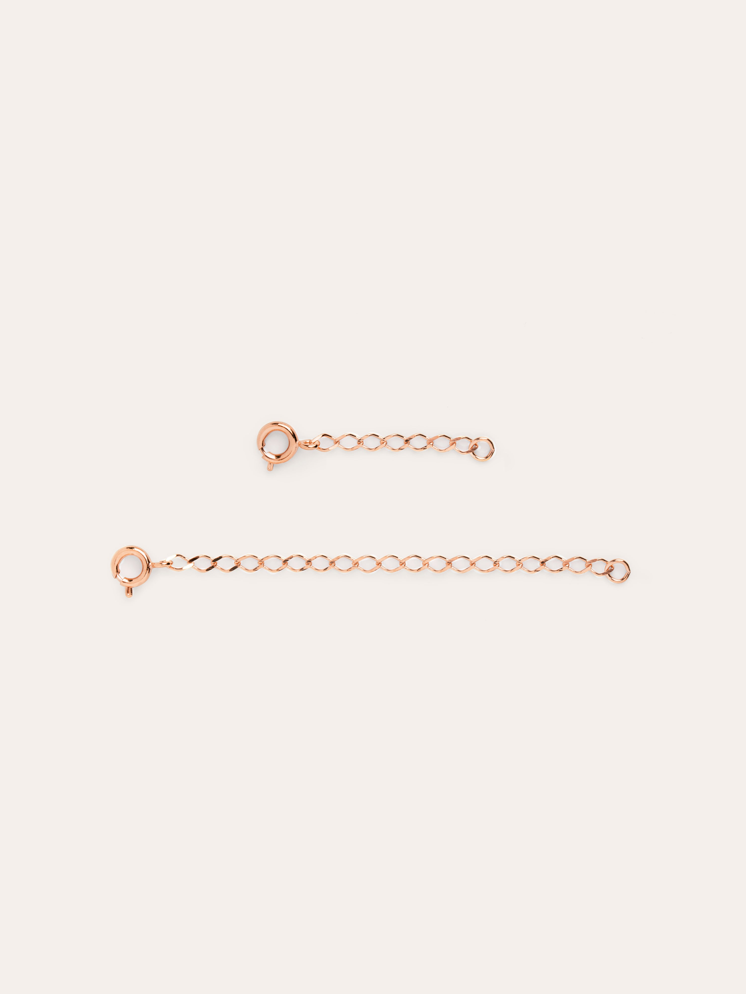 Este pack de 2 alargadores de collar de acero con baño de oro rosa, va a convertirse en el truco definitivo para combinar tus collares favoritos. El layering nunca fue más fácil de lucir.