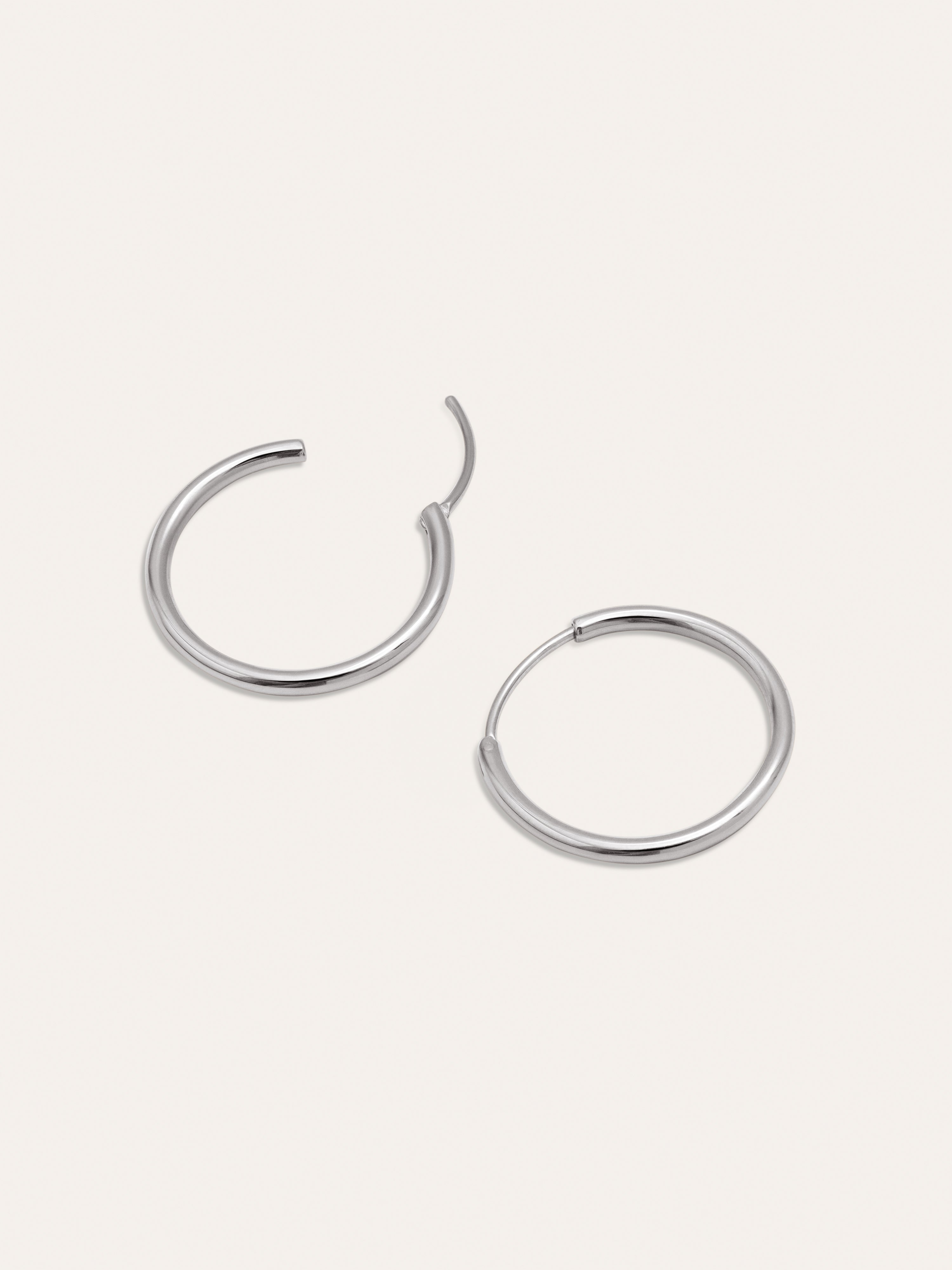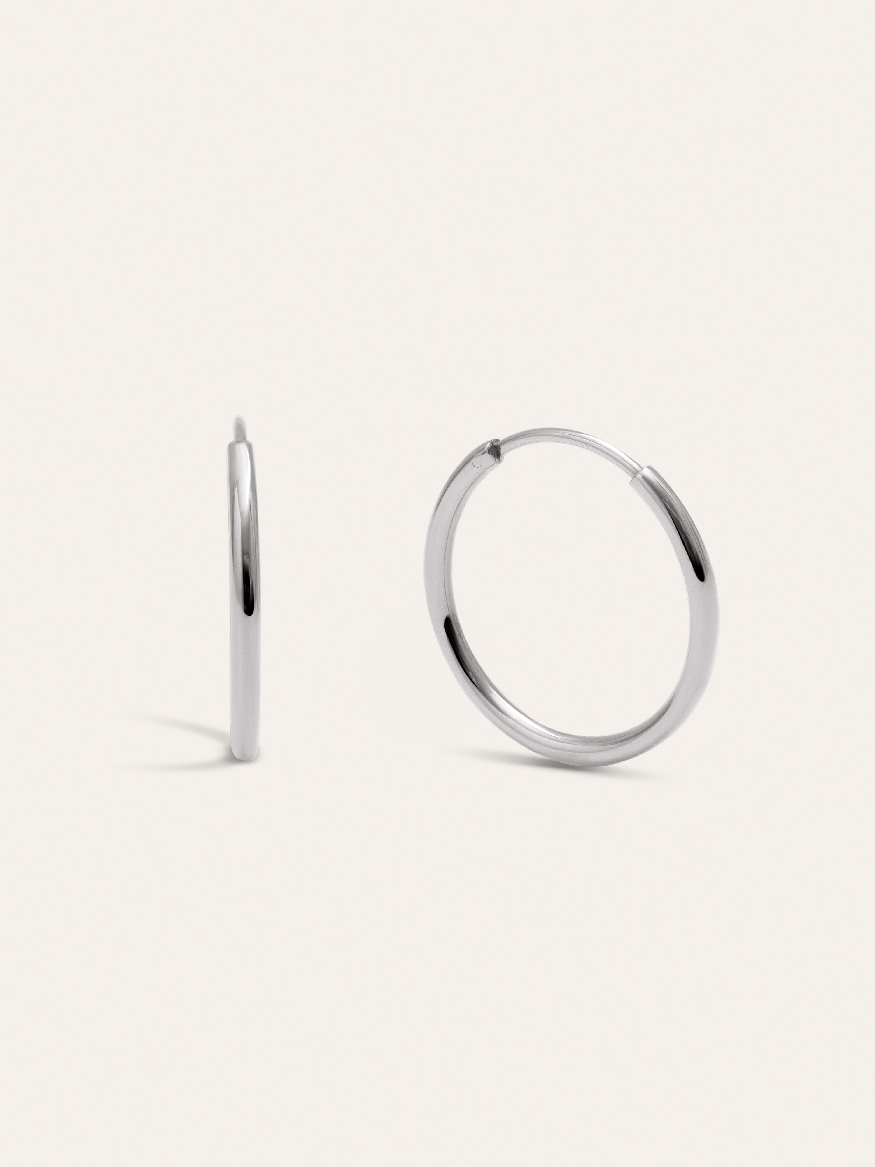 La versión midi de los aros más sencillos a la vez que bonitos. Unos pendientes en acero perfectos para usar en tu día a día✨