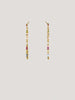 The "Long Iris Earrings" are long, dangling earrings with geometric shapes and colored zircons. Earrings that shine on their own and will elevate any look. ✨