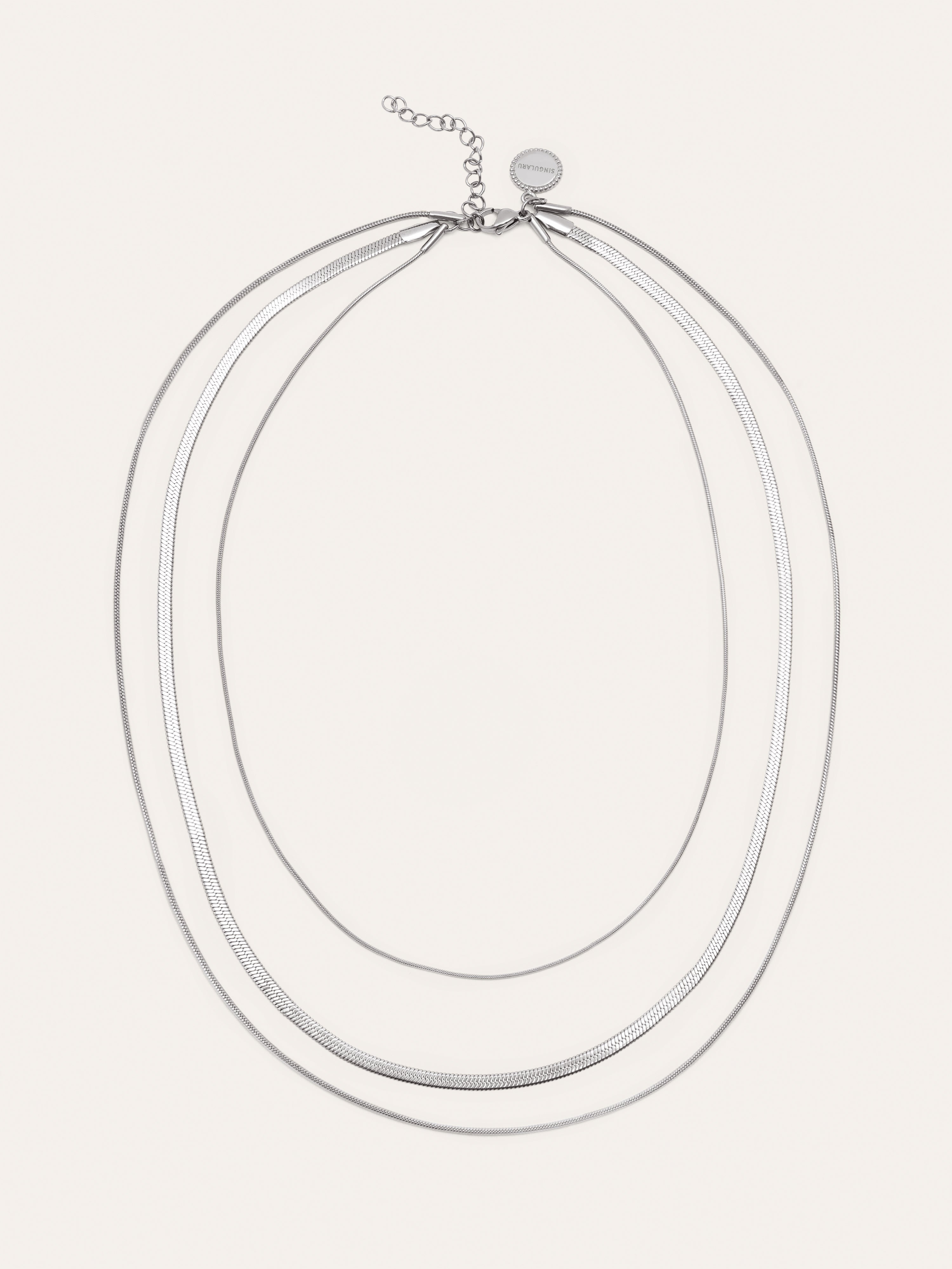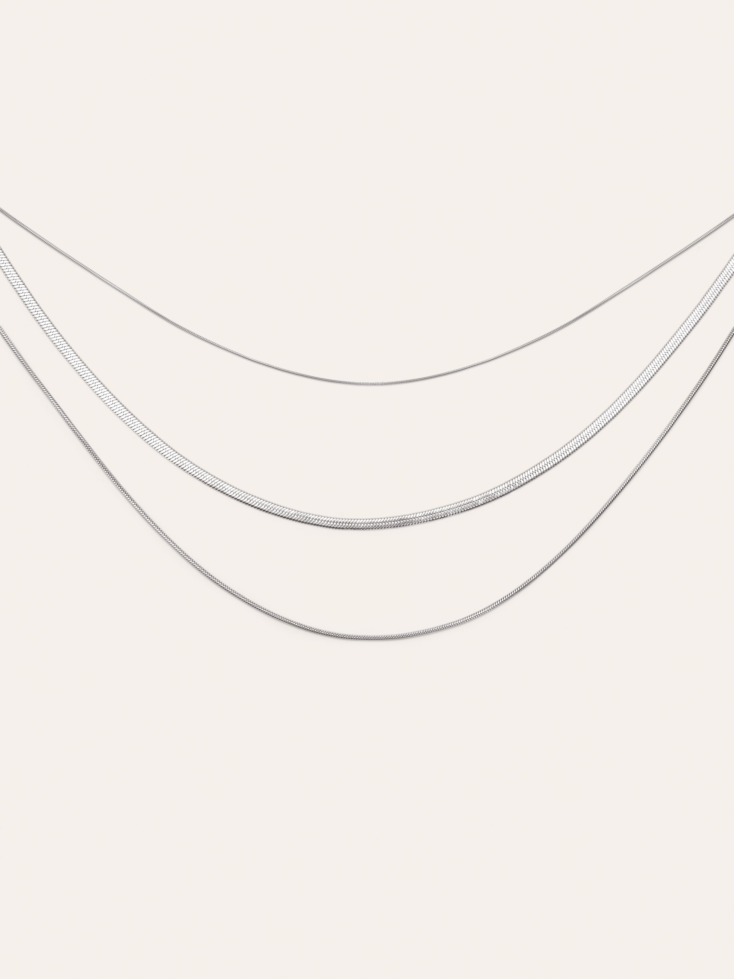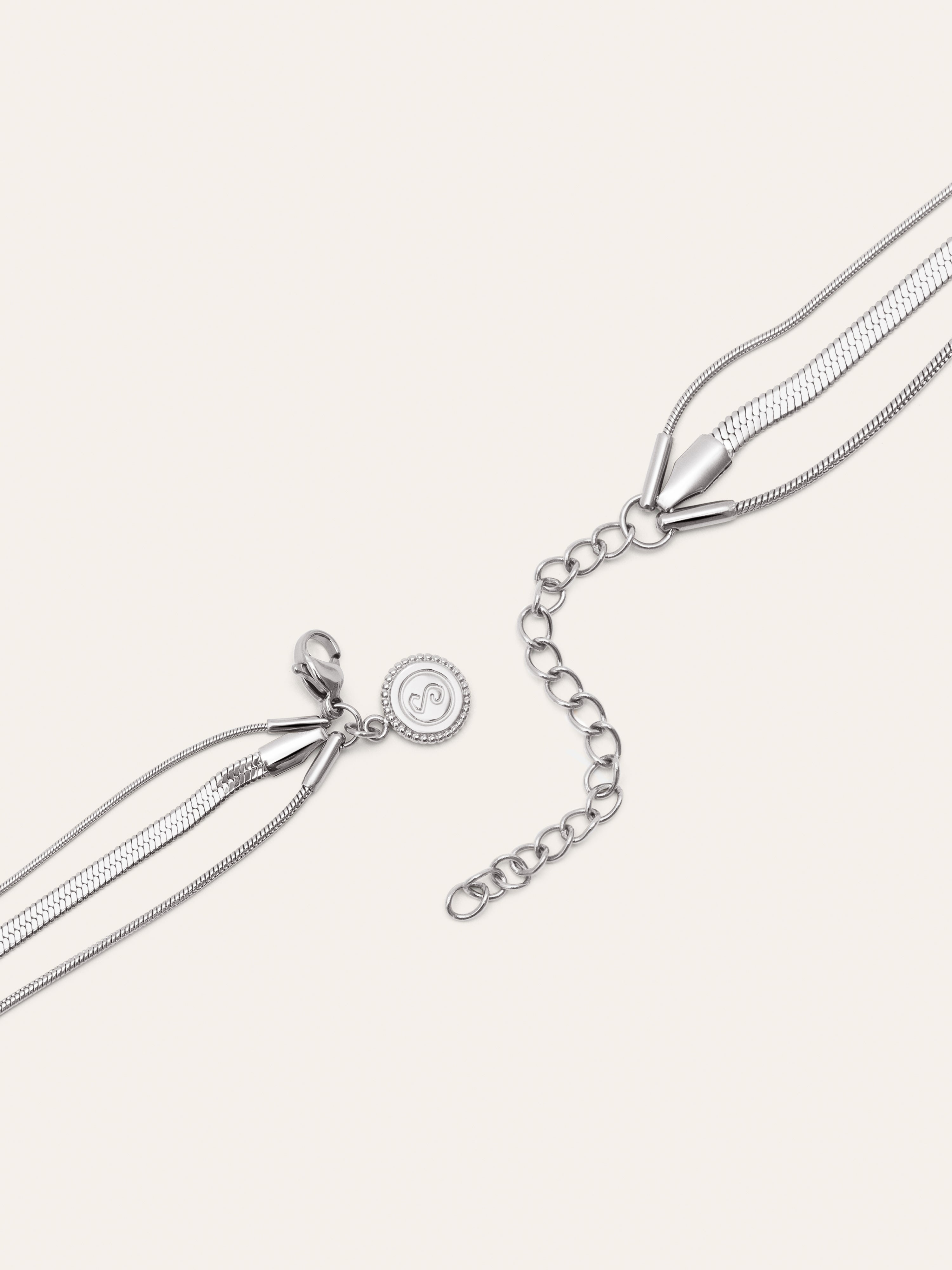 The Maat necklace features a layered design with three chains of different lengths, creating a cascading effect you'll love. The fine, smooth chains with a glossy finish make it the perfect complement to a low-cut dress. ✨