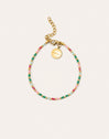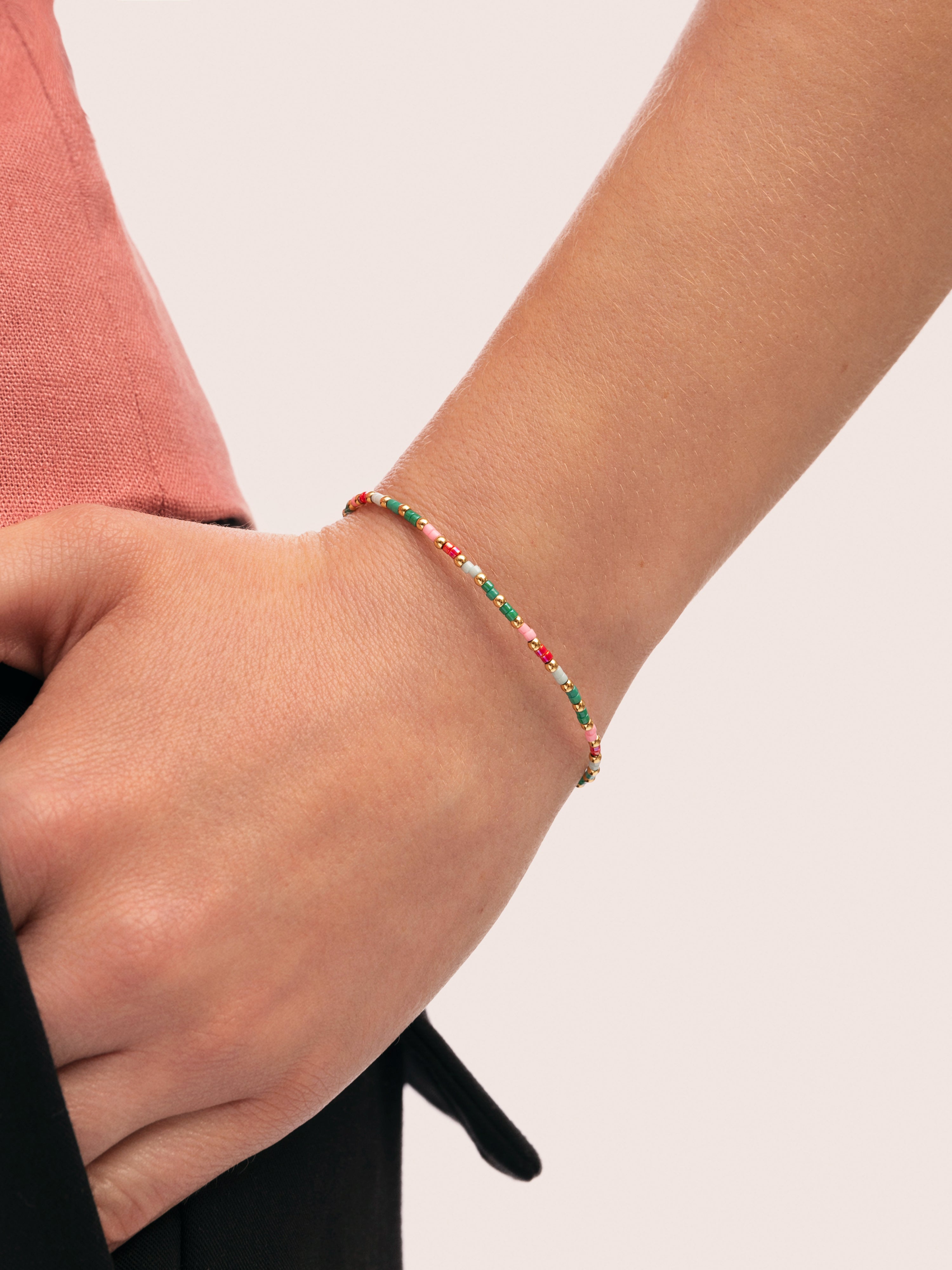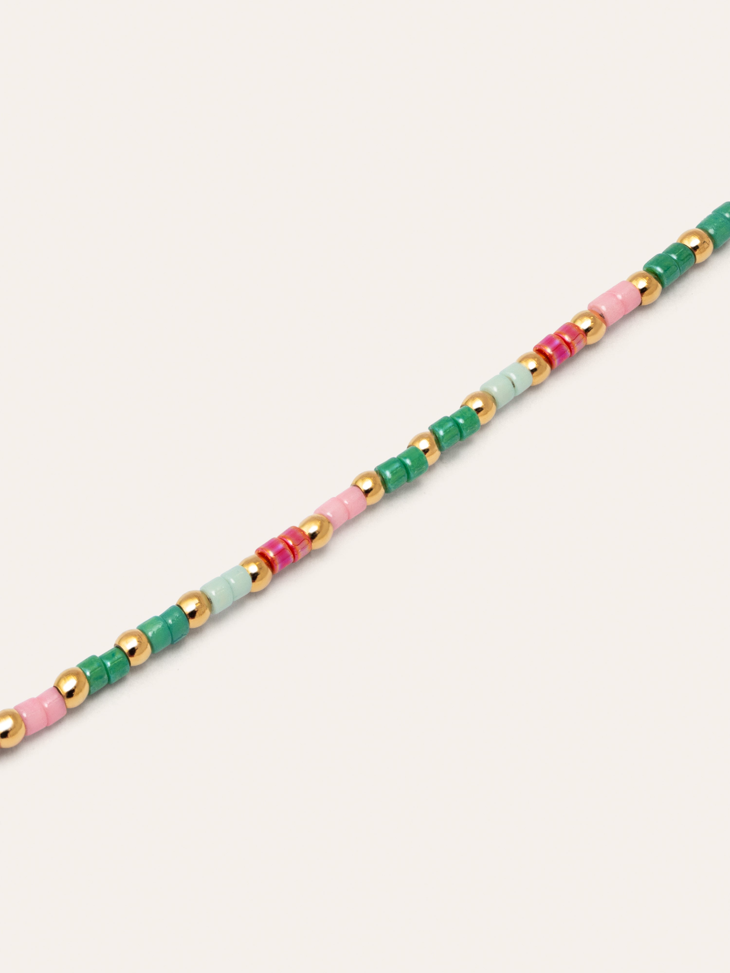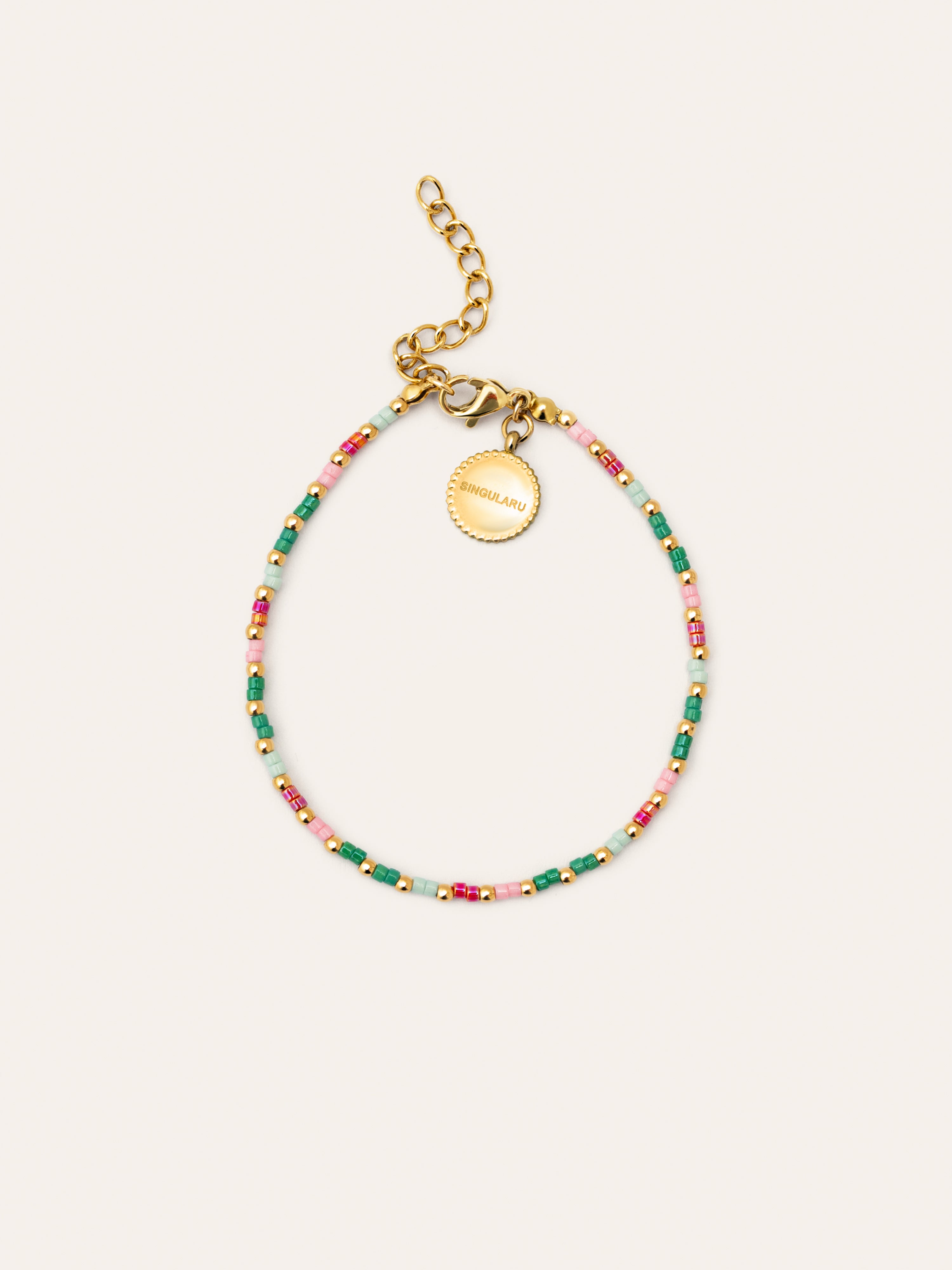 Die Armband Vidal Colors aus Edelstahl ist ein Armband mit bunten Perlen in Rosa-, Grün-, Weiß- und Goldtönen. Ihr zartes und lebendiges Design macht sie ideal, um jedem Look einen Hauch von Farbe und Stil zu verleihen – perfekt für einen lässigen oder bohemischen Stil. ✨