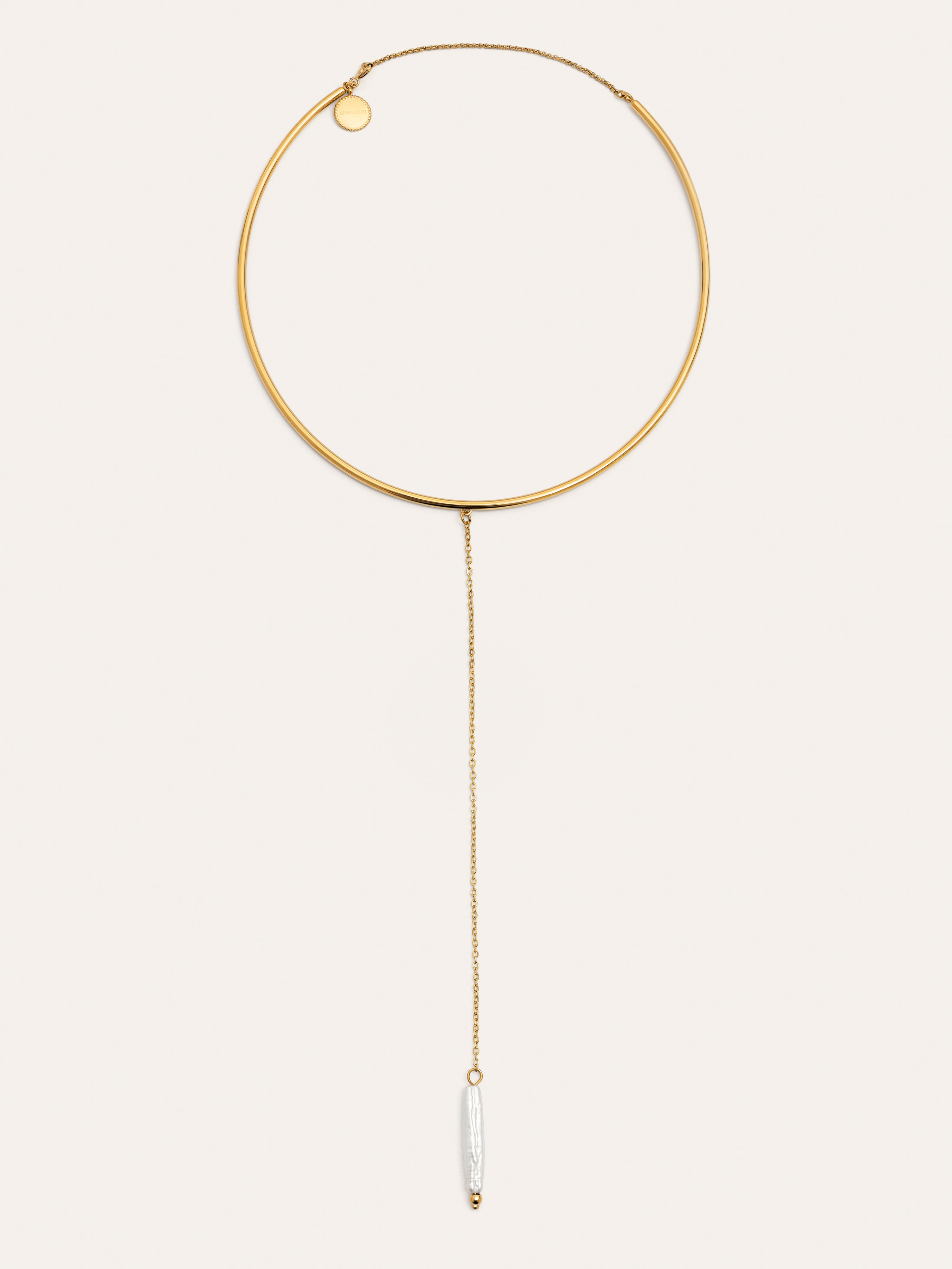 El Choker Y Pearl de acero bañado en oro es un collar pegado al cuello con una cadena fina acabada en perla ideal para tus eventos o fiestas. ✨