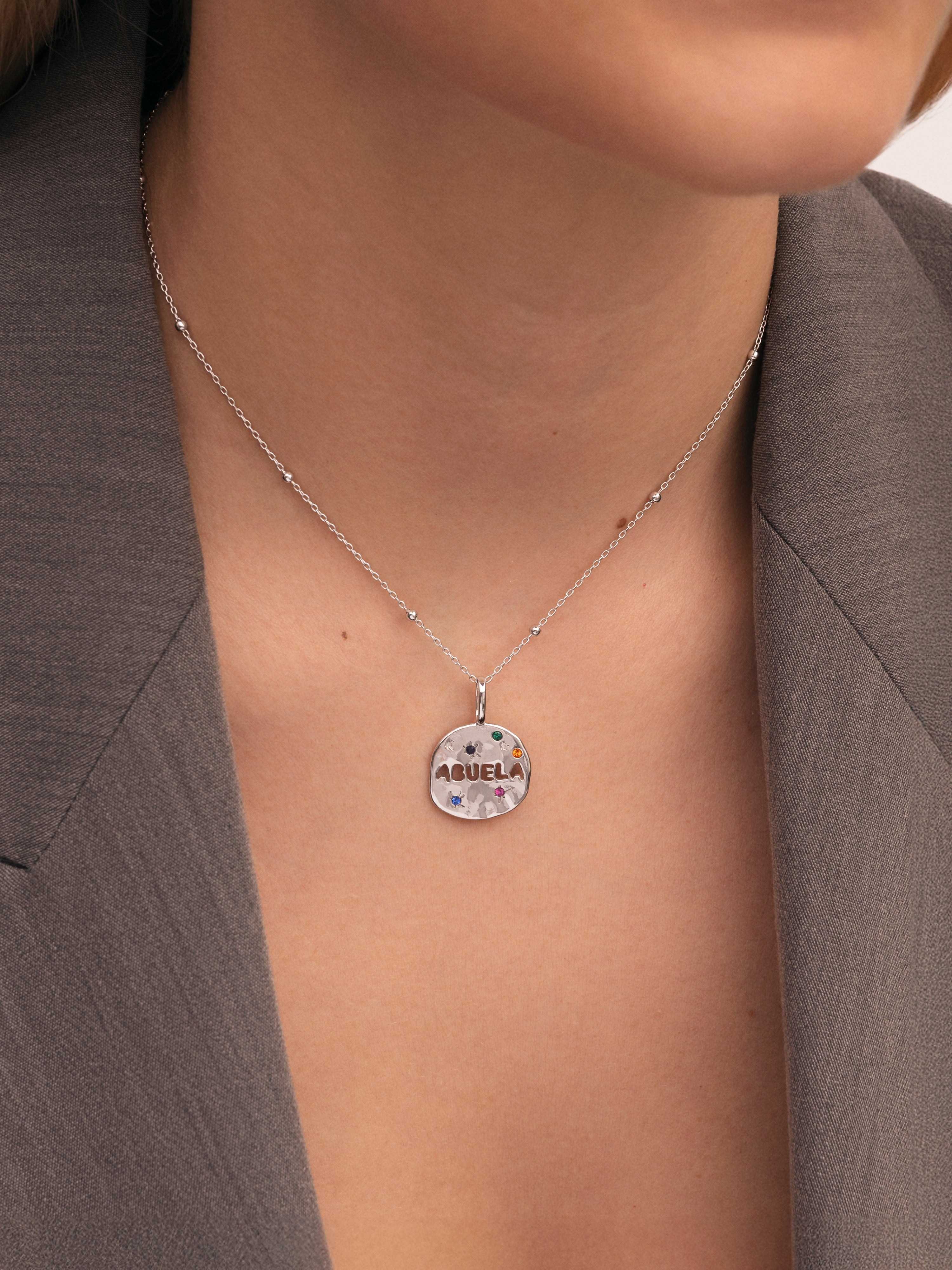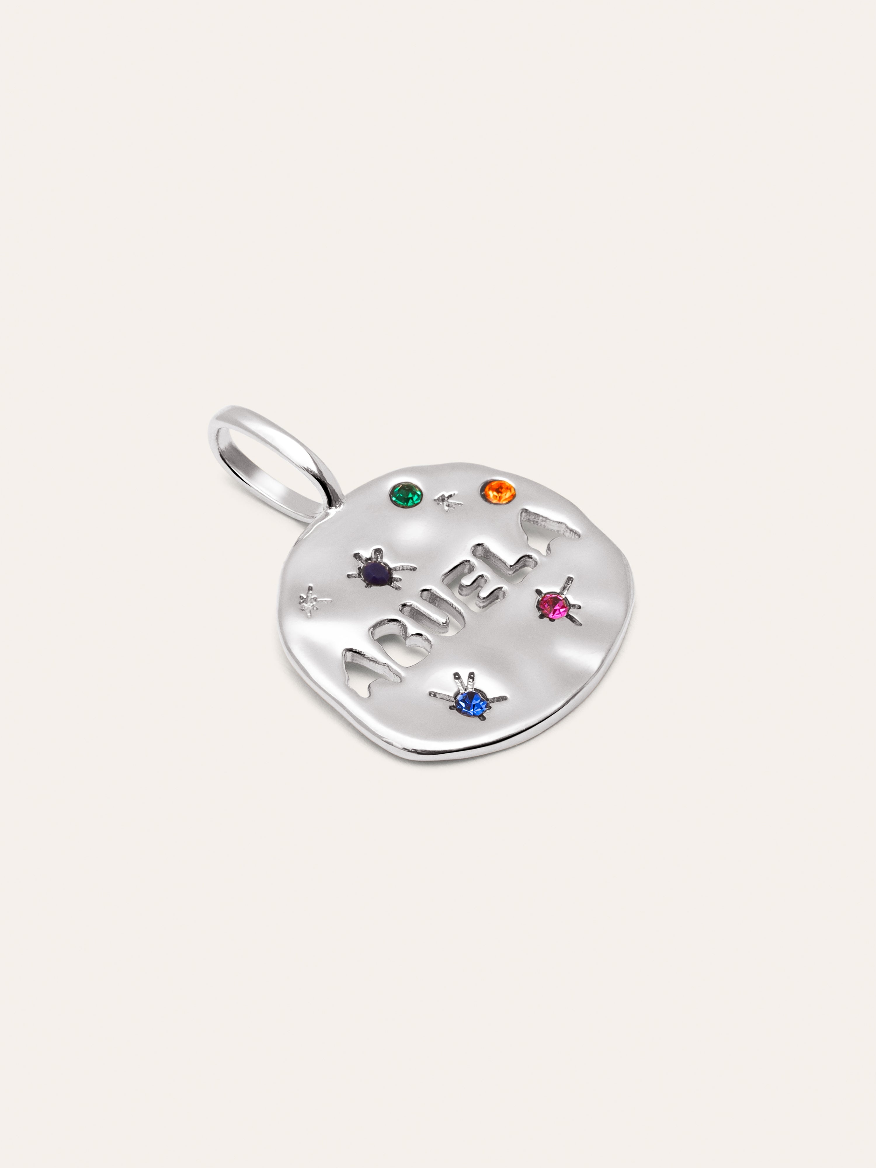 - Motivo de 18mm de diámetro. Circonitas de 2mm. Asa soldada de 8,4 x 5,7mm.