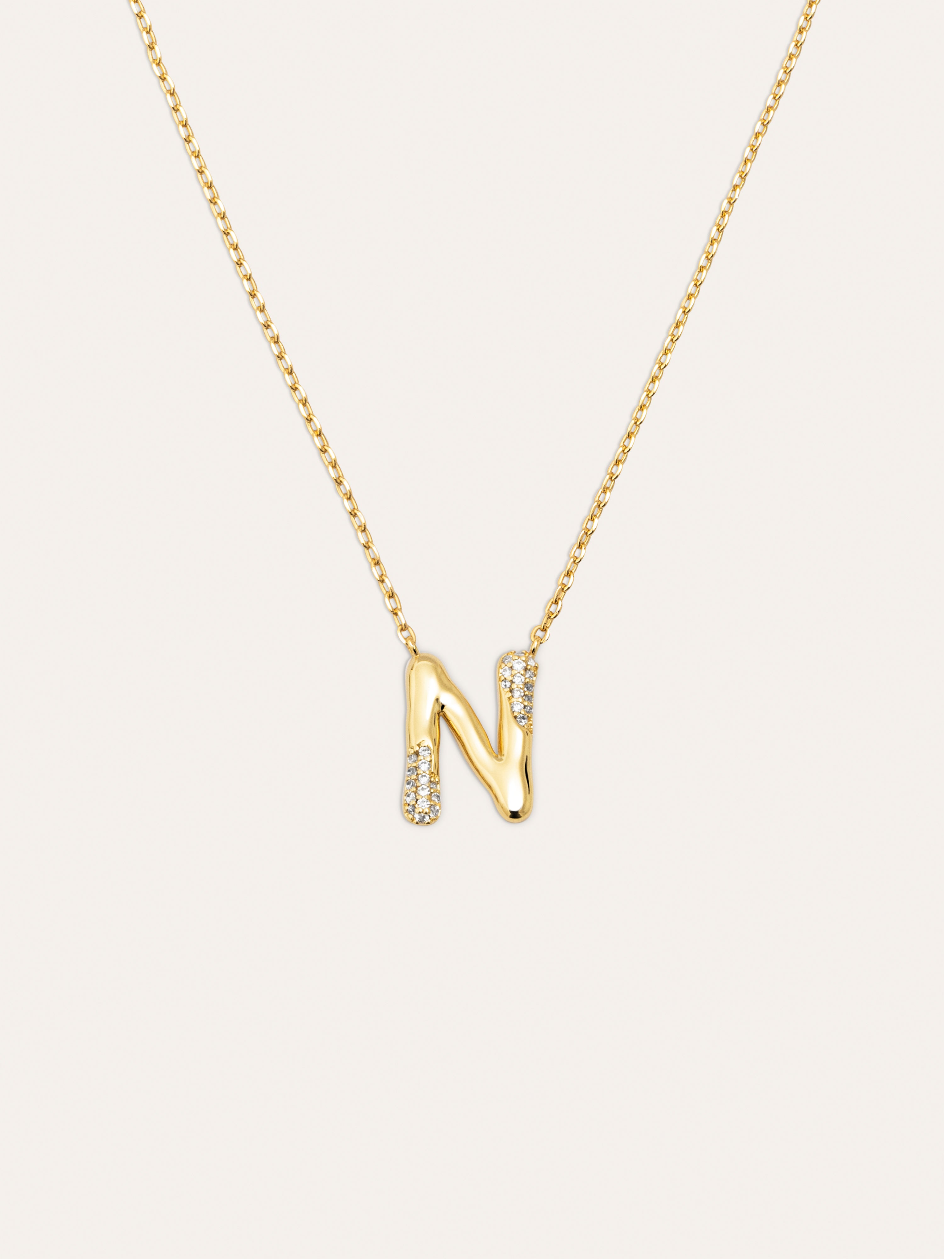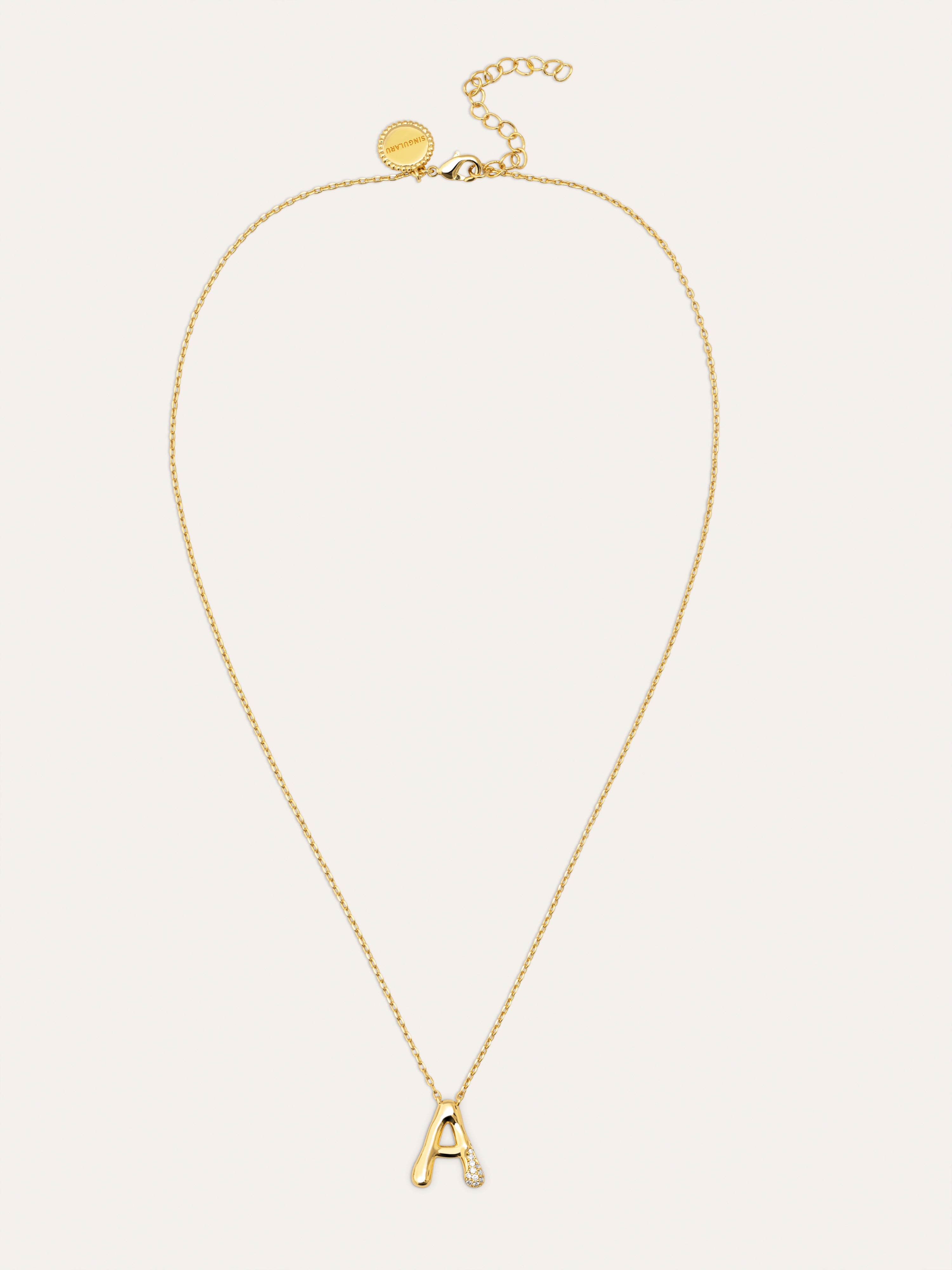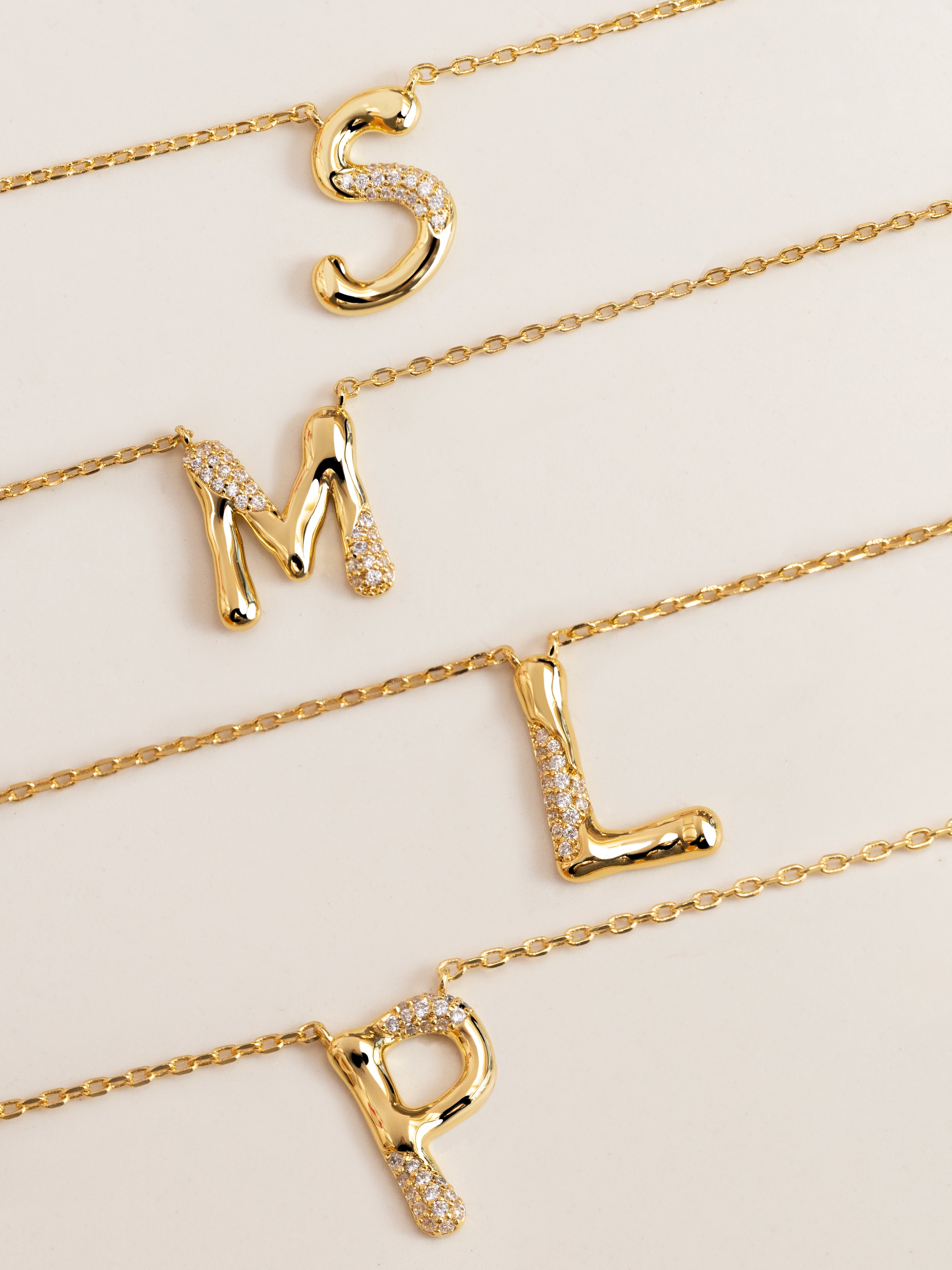 El Collar Personalizado Letter Brillante es el colgante más especial. ✨ Una cadena con un charm con volumen y circonitas brillantes. Esta joya es perfecta para regalar a tu persona especial.