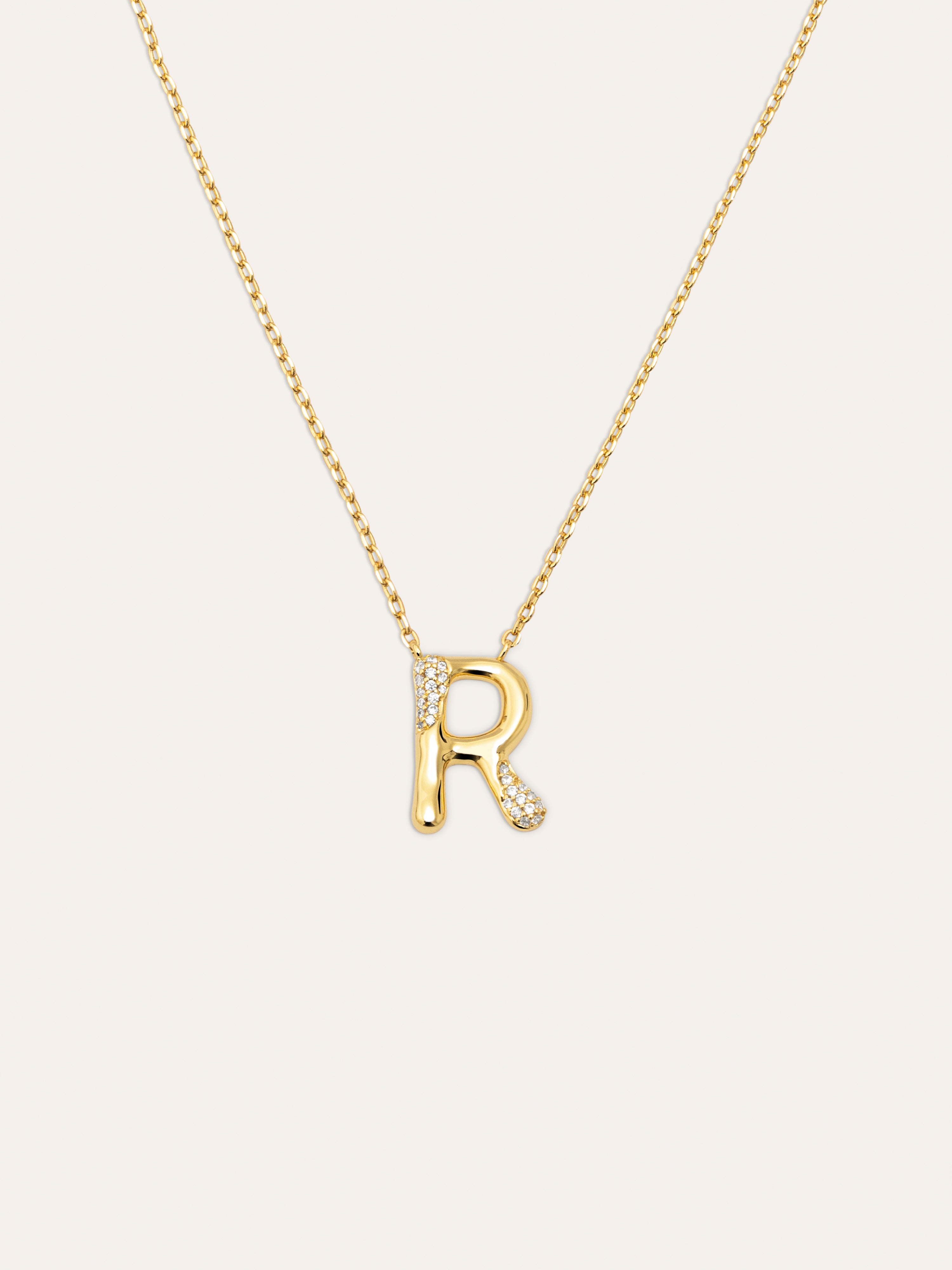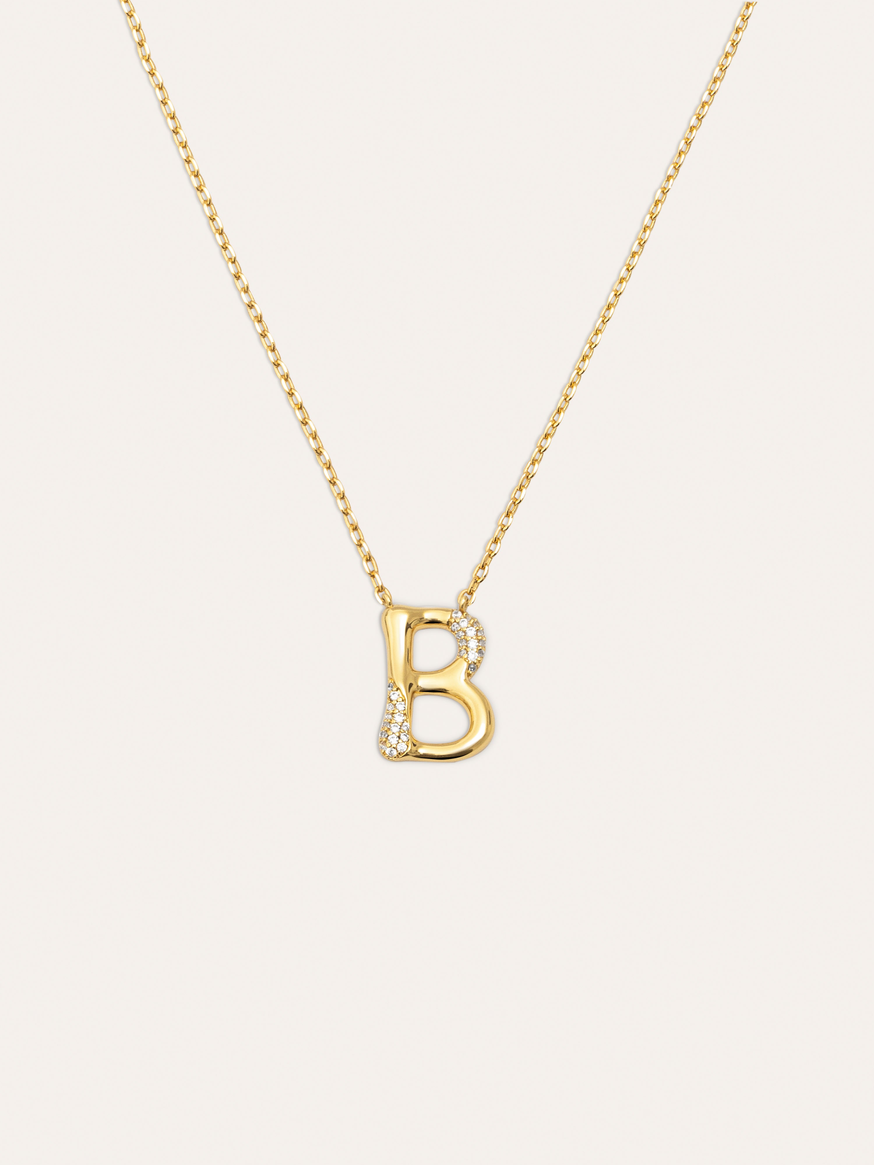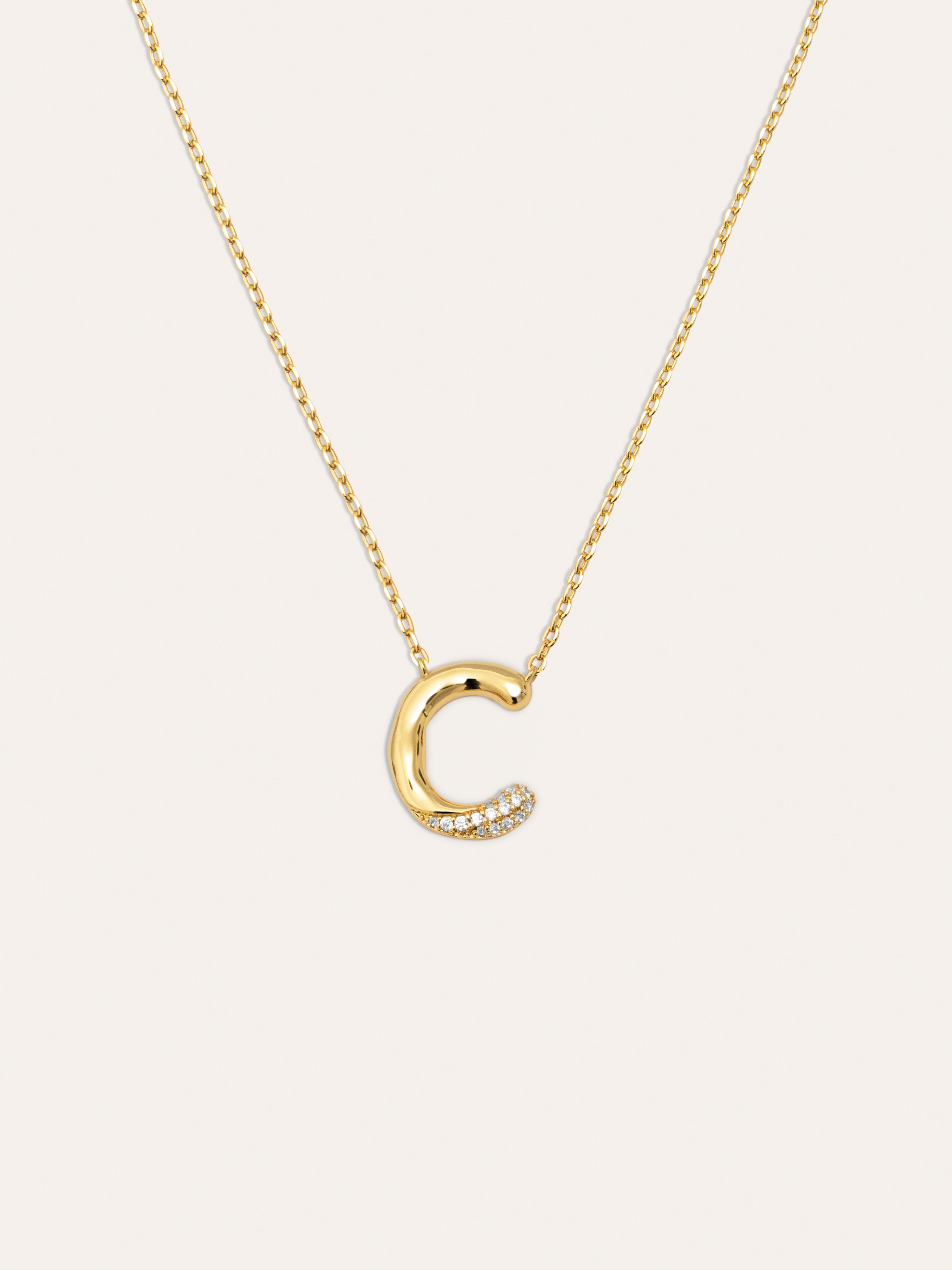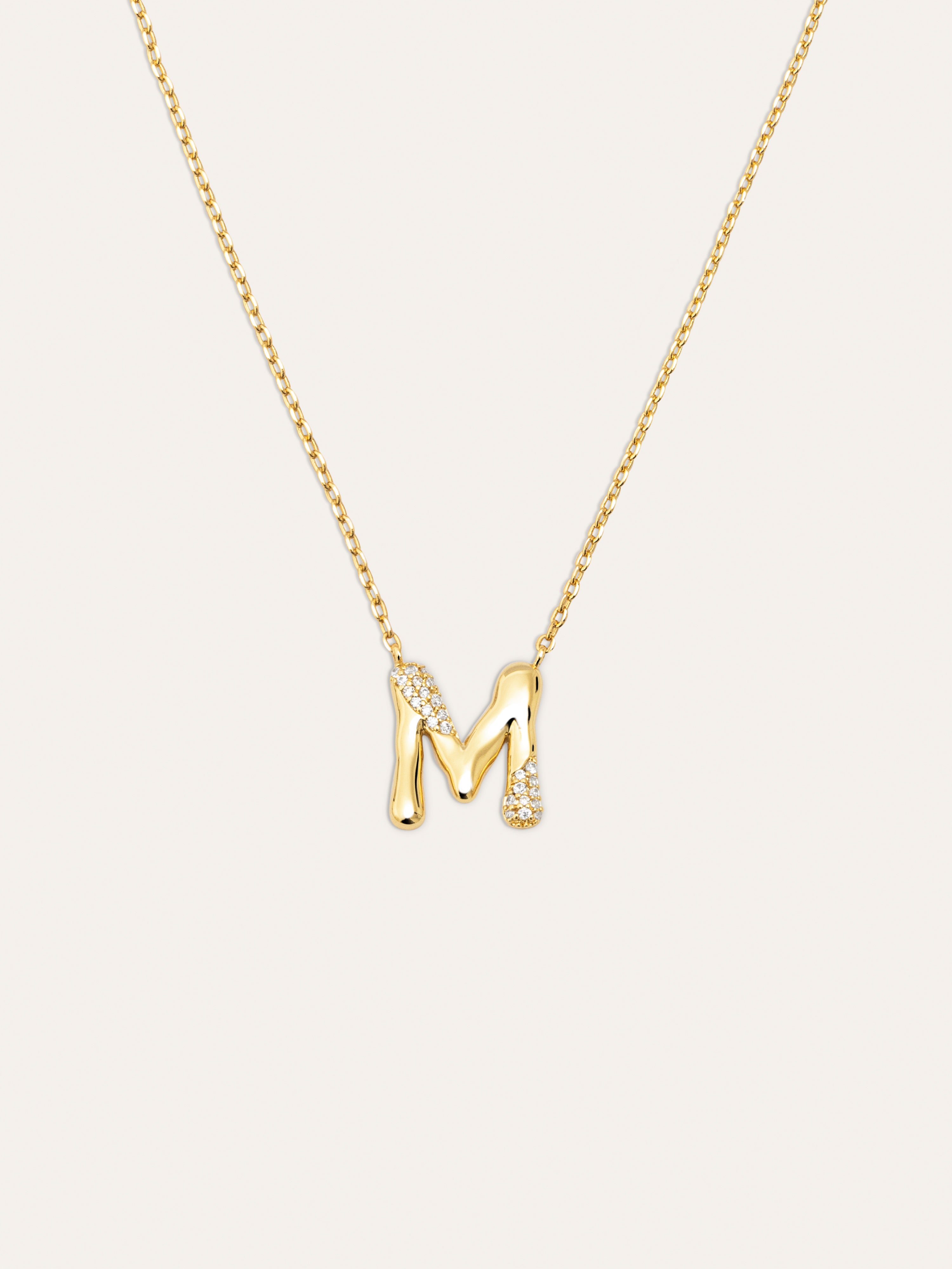 El Collar Personalizado Letter Brillante es el colgante más especial. ✨ Una cadena con un charm con volumen y circonitas brillantes. Esta joya es perfecta para regalar a tu persona especial.