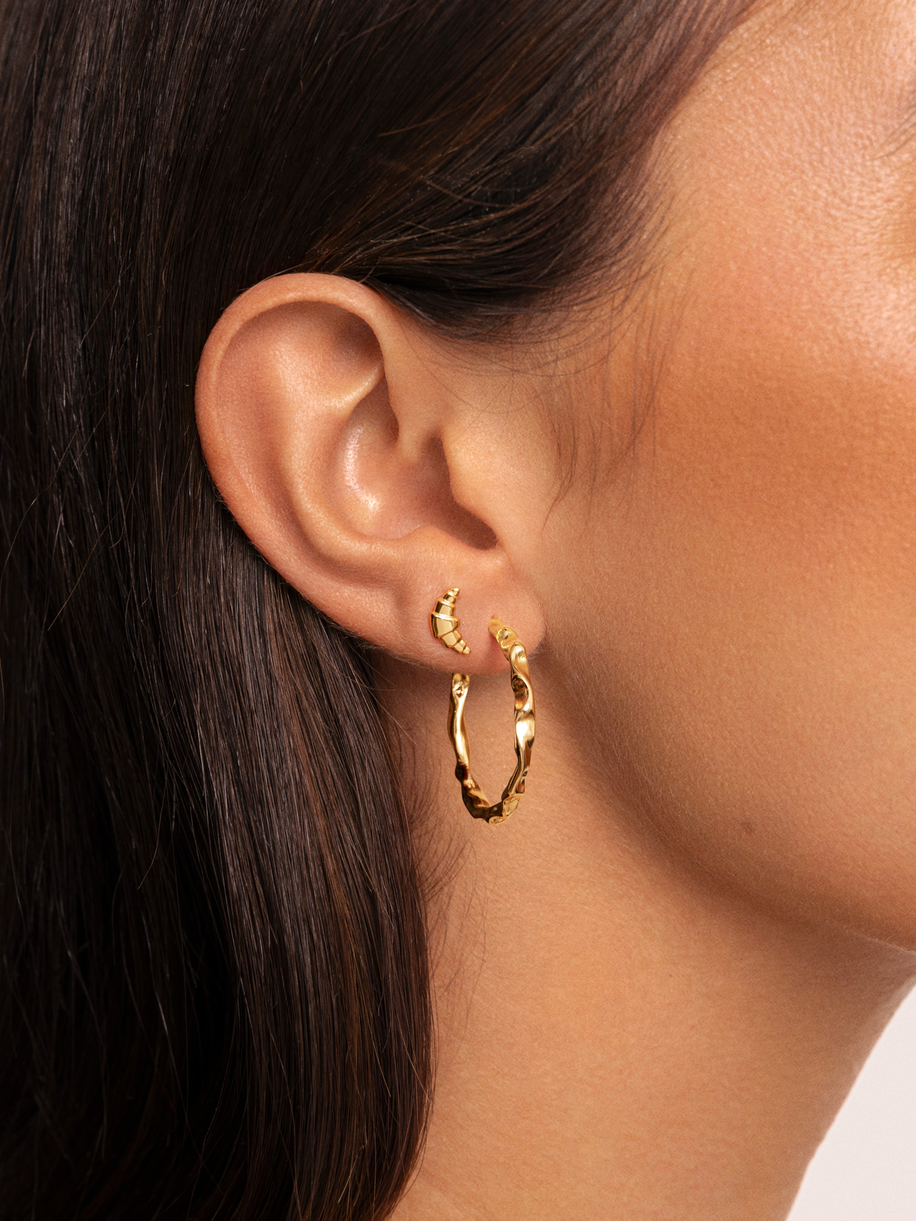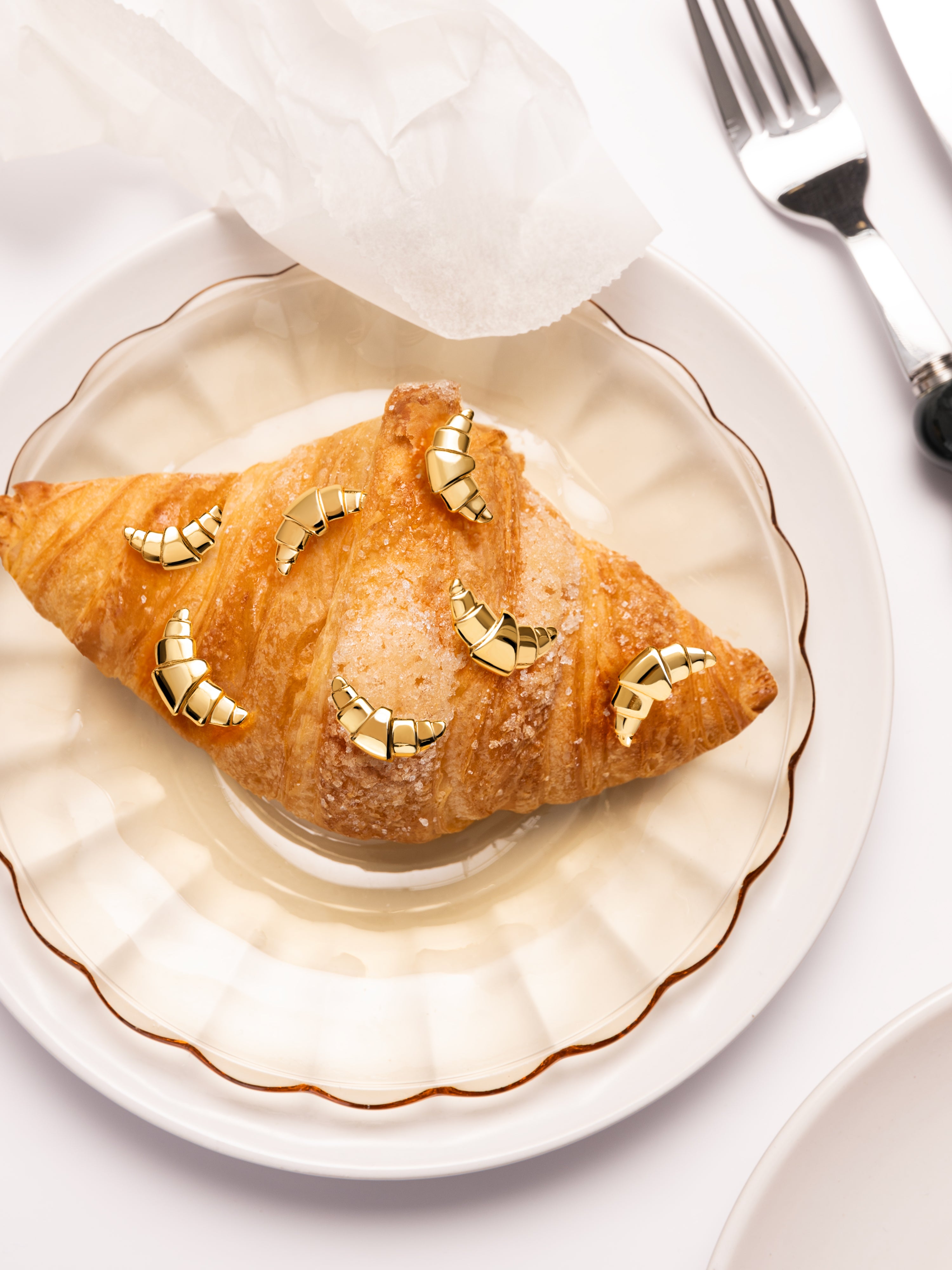 Un pendiente suelto con forma de croissant bañado en oro para las amantes de los piercings extra dulces. 🥐 Si eres fan de todo lo que tiene que ver con París, este piercing en forma de croissant no puede faltarle a tu look. 🗼