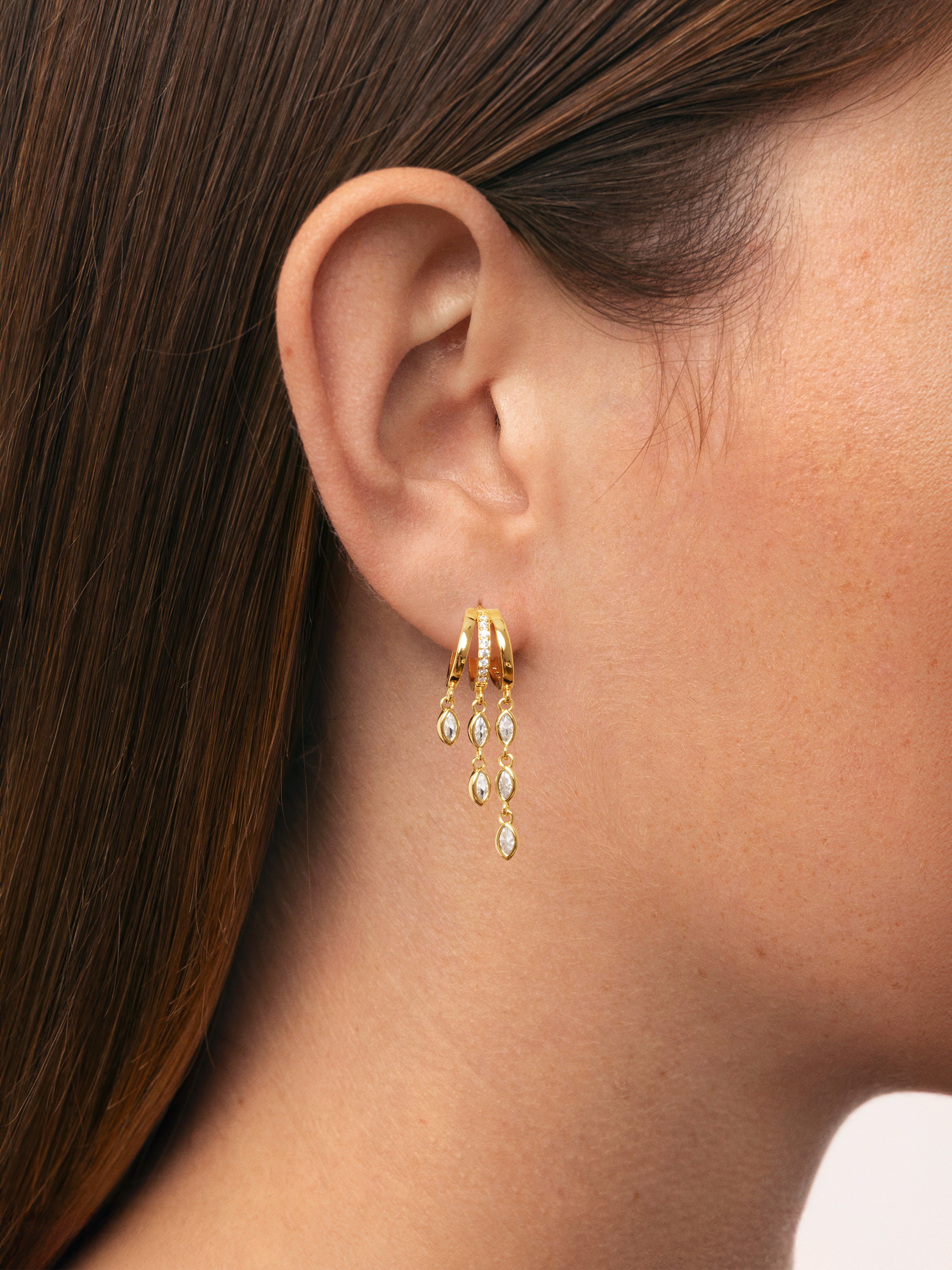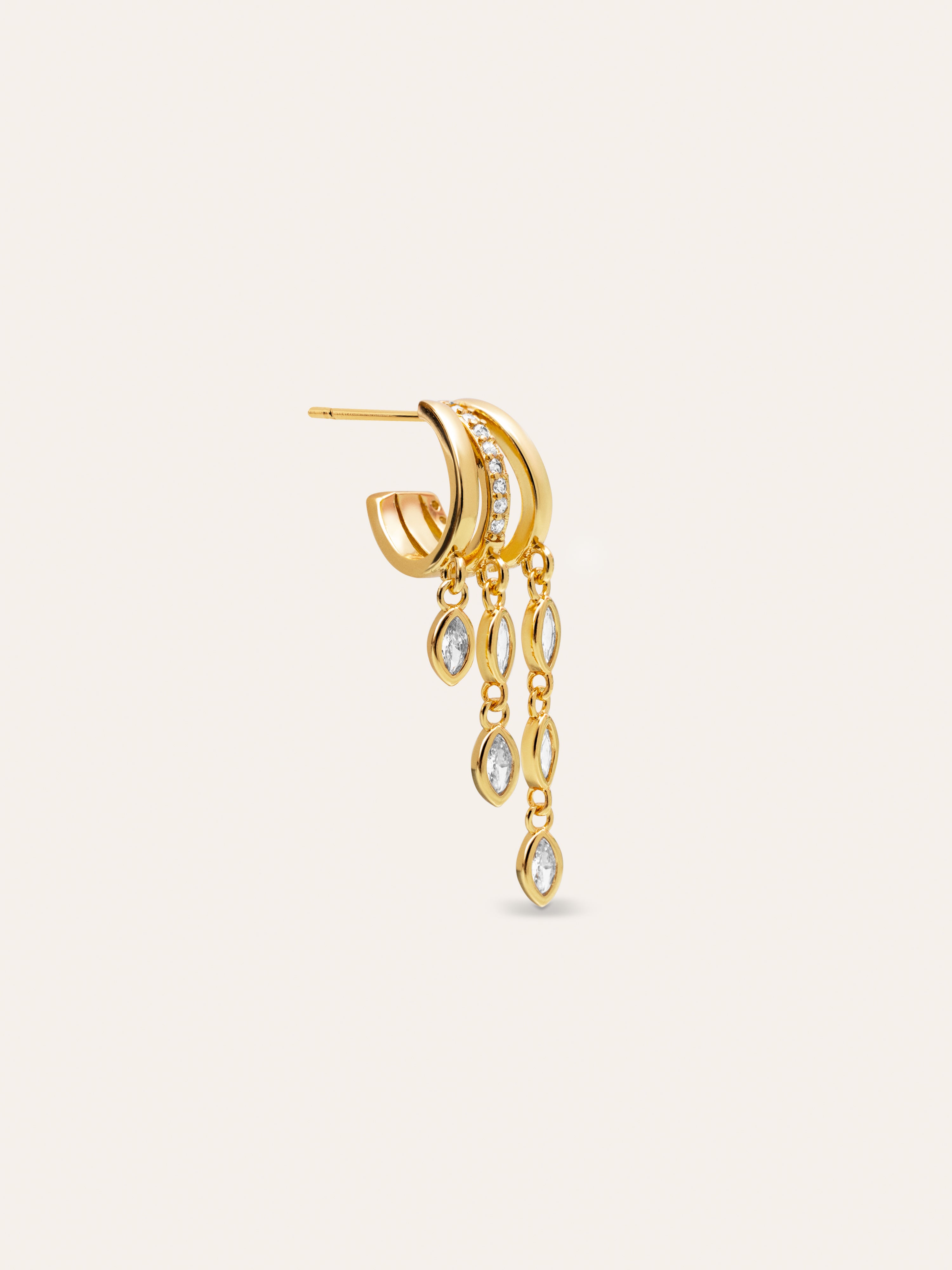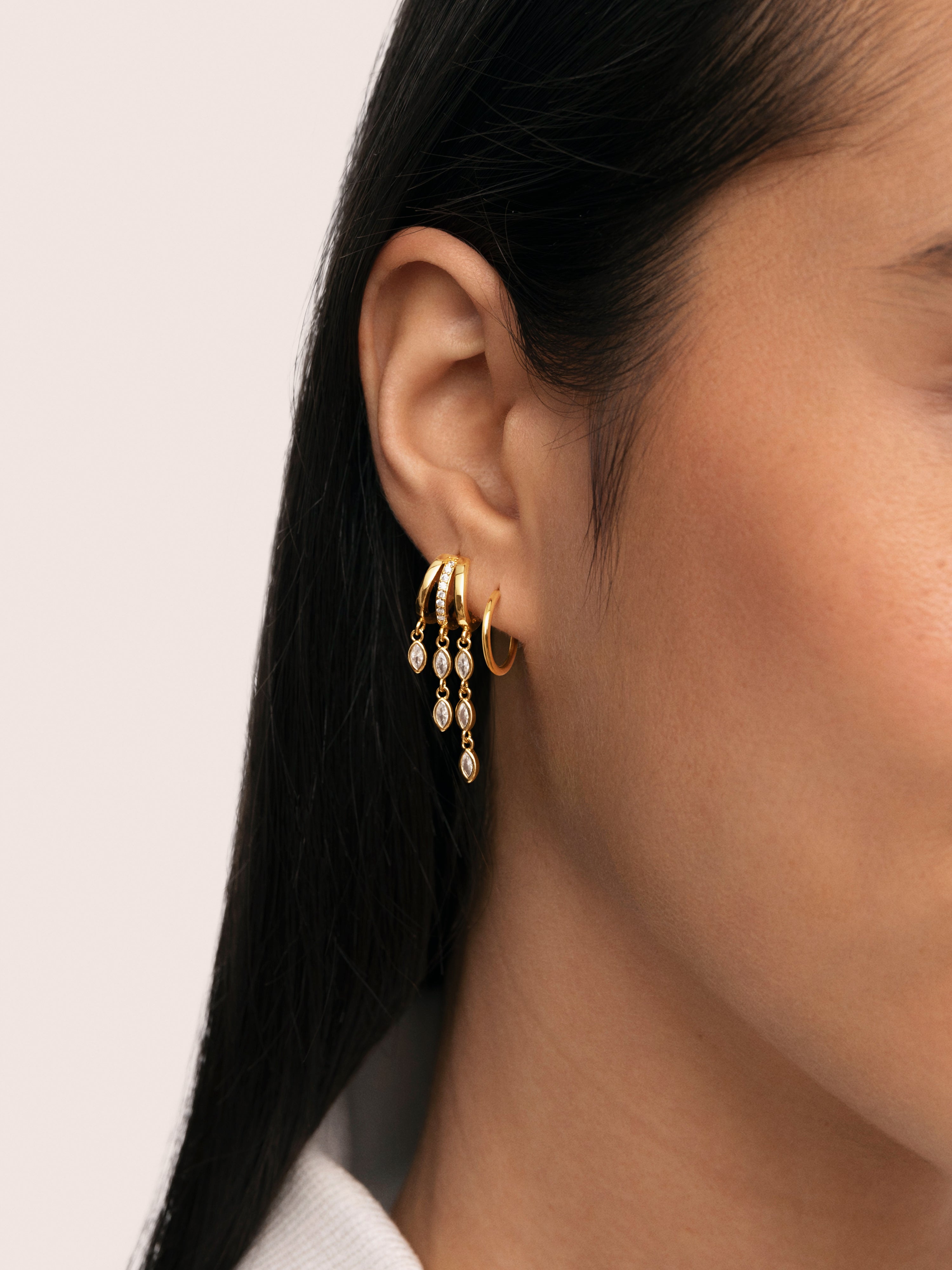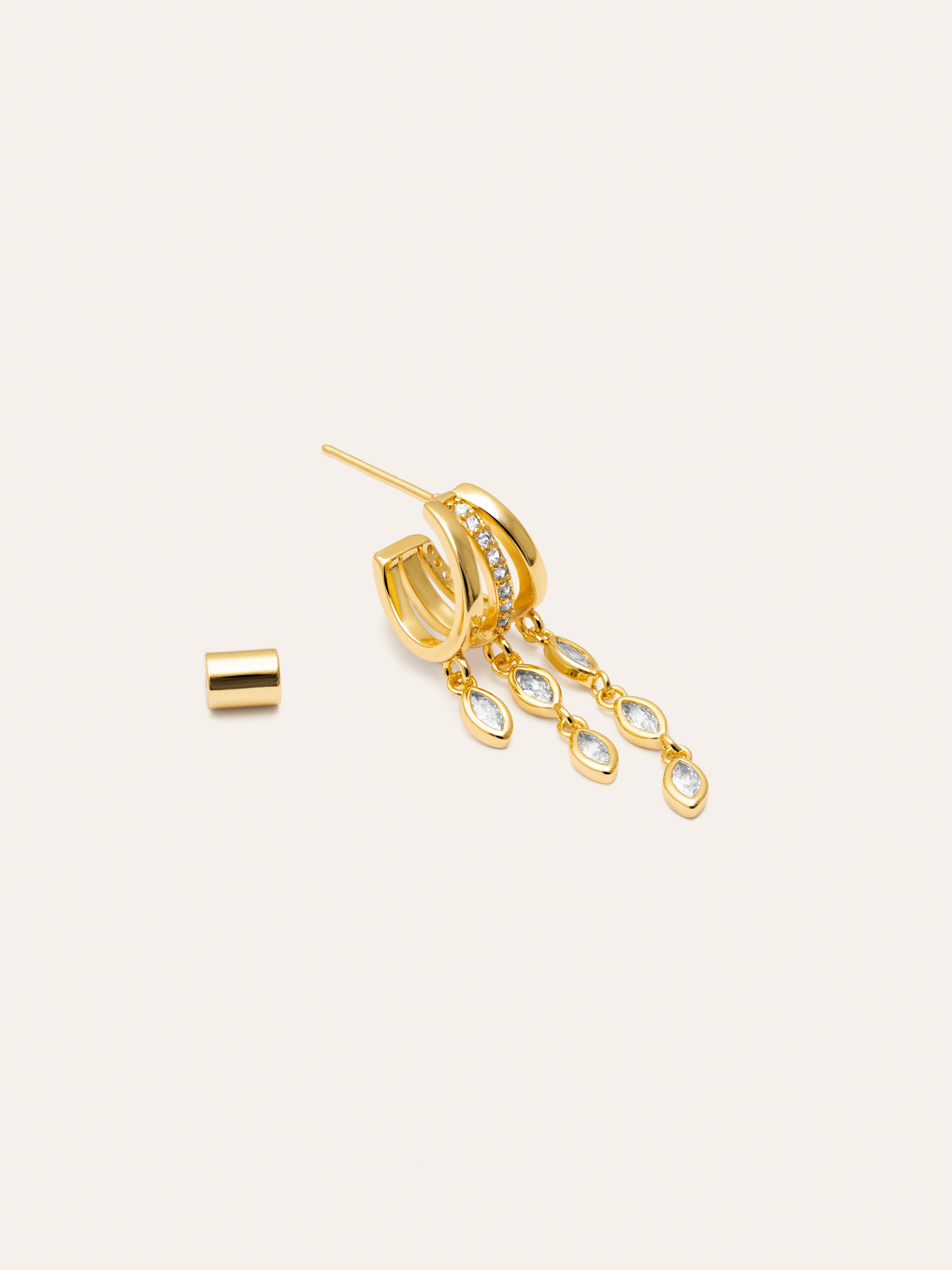 El pendiente suelto Triple Drip baño oro, es un piercing de lo más elegante. Su triple aro dorado con circonitas y colgantes en forma de lágrima brillante te encantará. Es ideal para dar un toque sofisticado a cualquier look. ✨