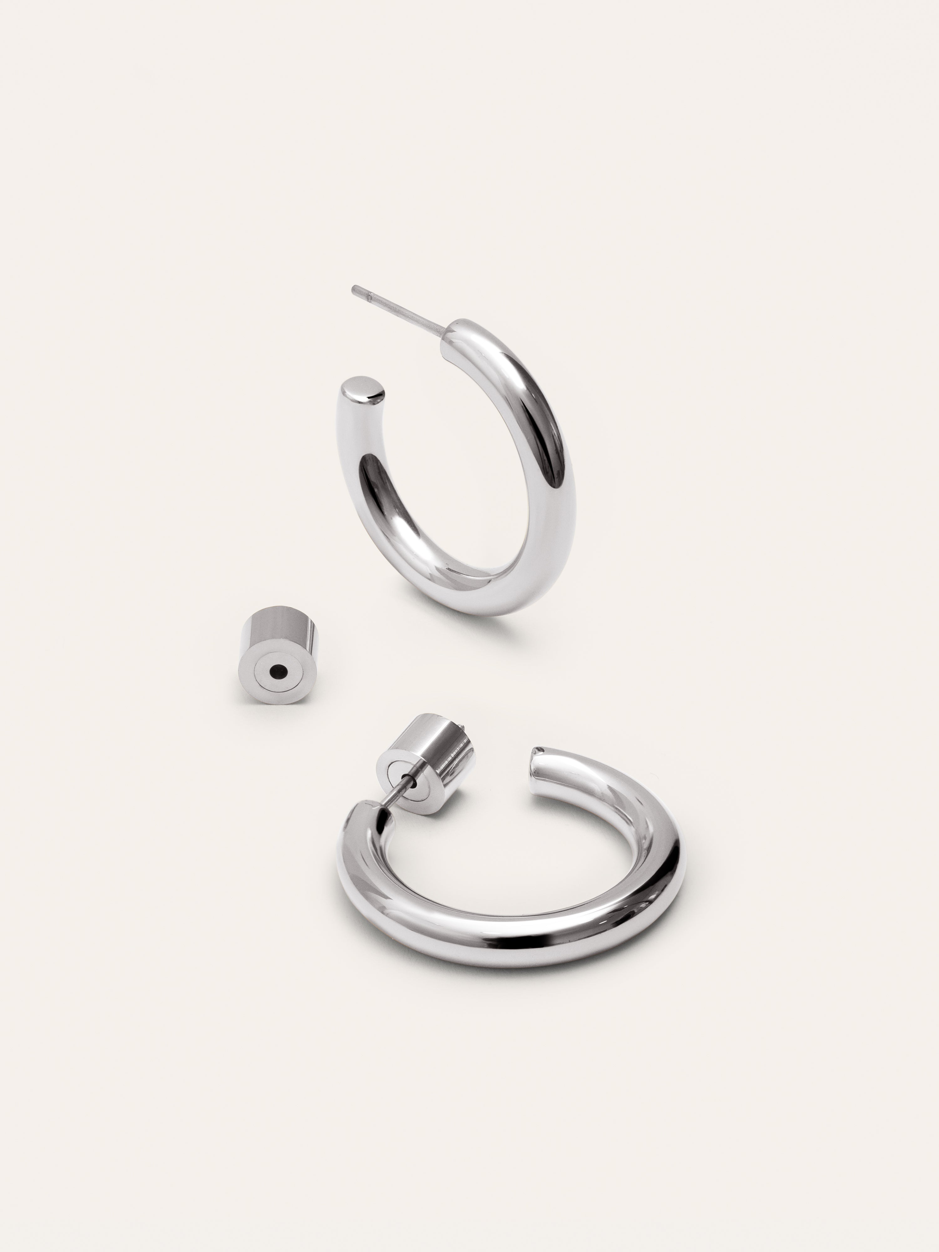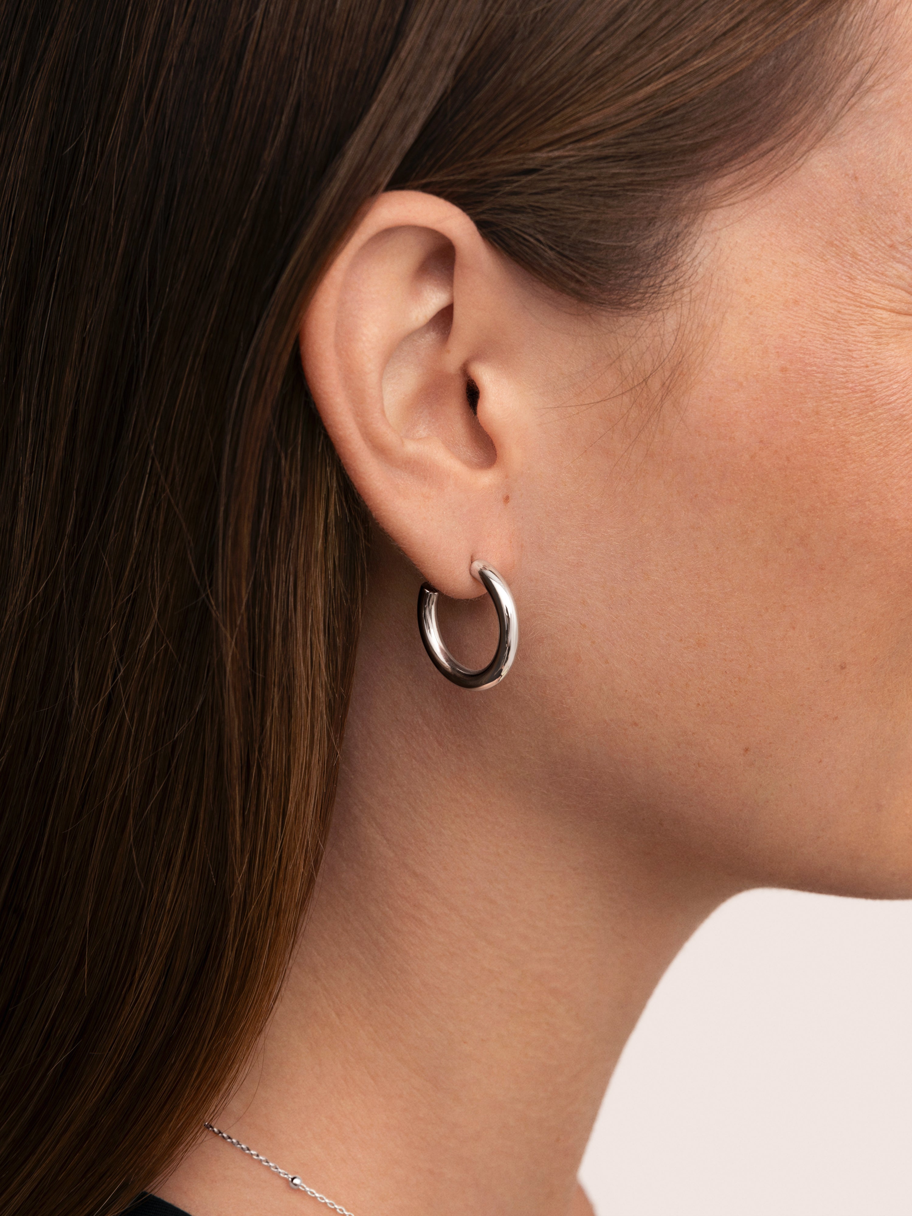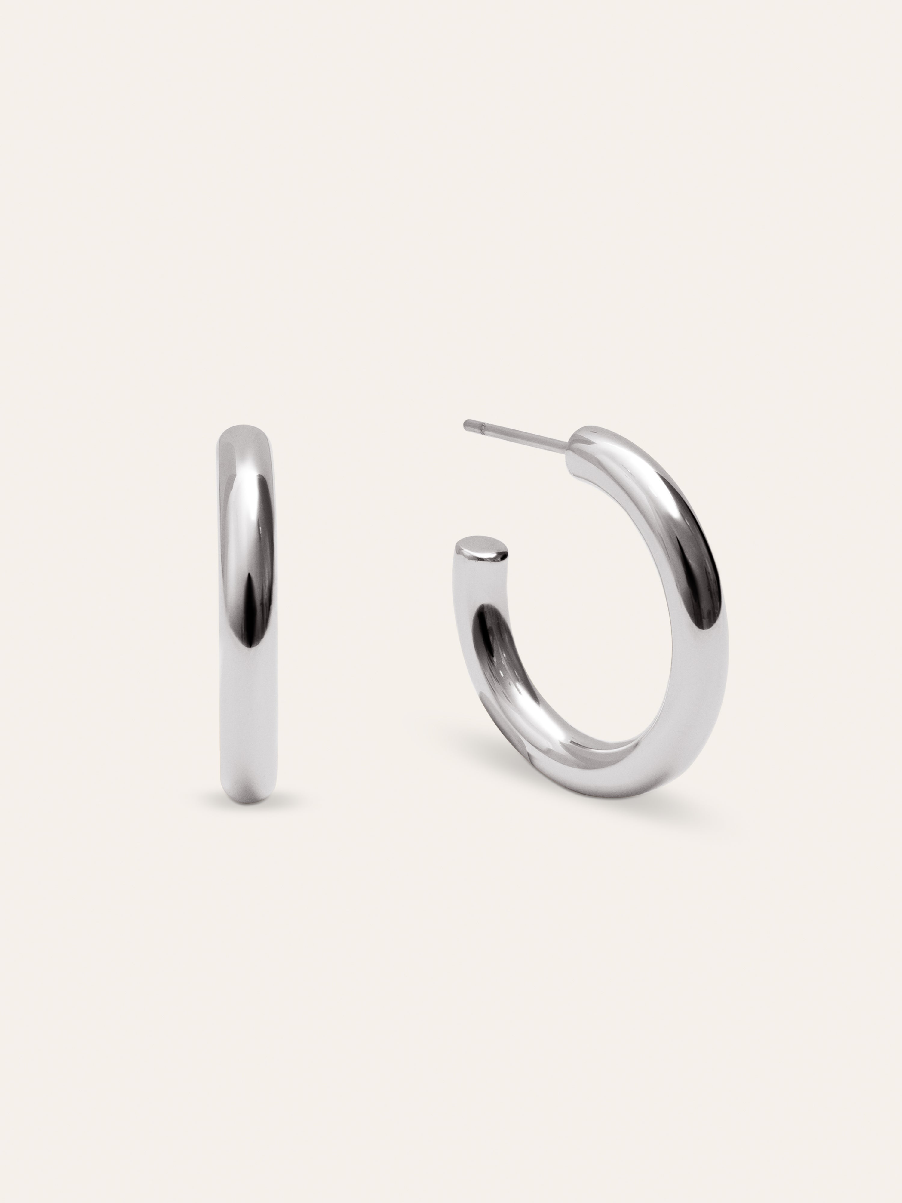 Unos aros midi en acero para todos tus looks de diario. Su grosor y tamaño grande los hacen perfectos para darle ese toque original a todos tus estilismos. ✨