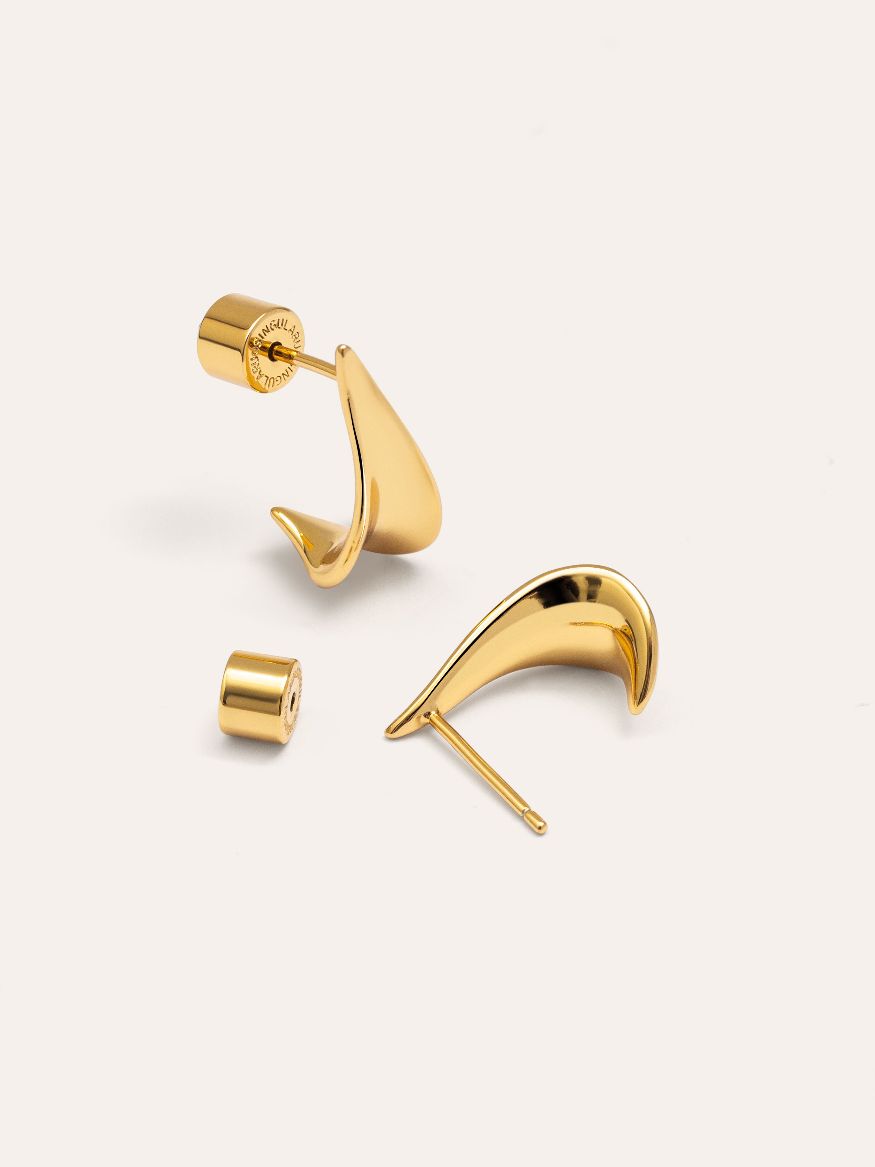 Unos pendientes en forma geométrica bañados en Oro de 18kt. Unos pendientes ideales para añadir a tu ear-look. ✨